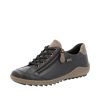 Remonte. Black Leather and Bronze Tongue Lace and Zip Fastening Tex Membrane Lined Walker (Casual Shoe)
