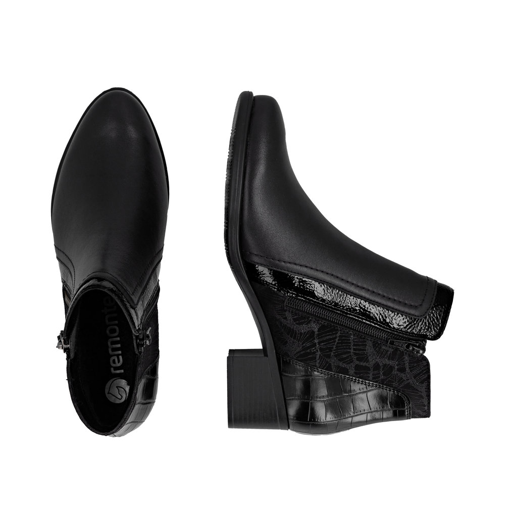 • Remonte Black Zip Sided Block Heel Ankle Boot