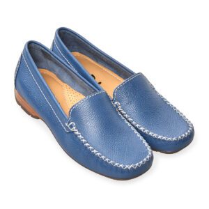 Van Dal. Denim Blue Sanson Driver, crafted from soft leather with contrasting stitch detailing and boasts a leather lining and rubber sole for a luxuriously soft and comfortable finish.