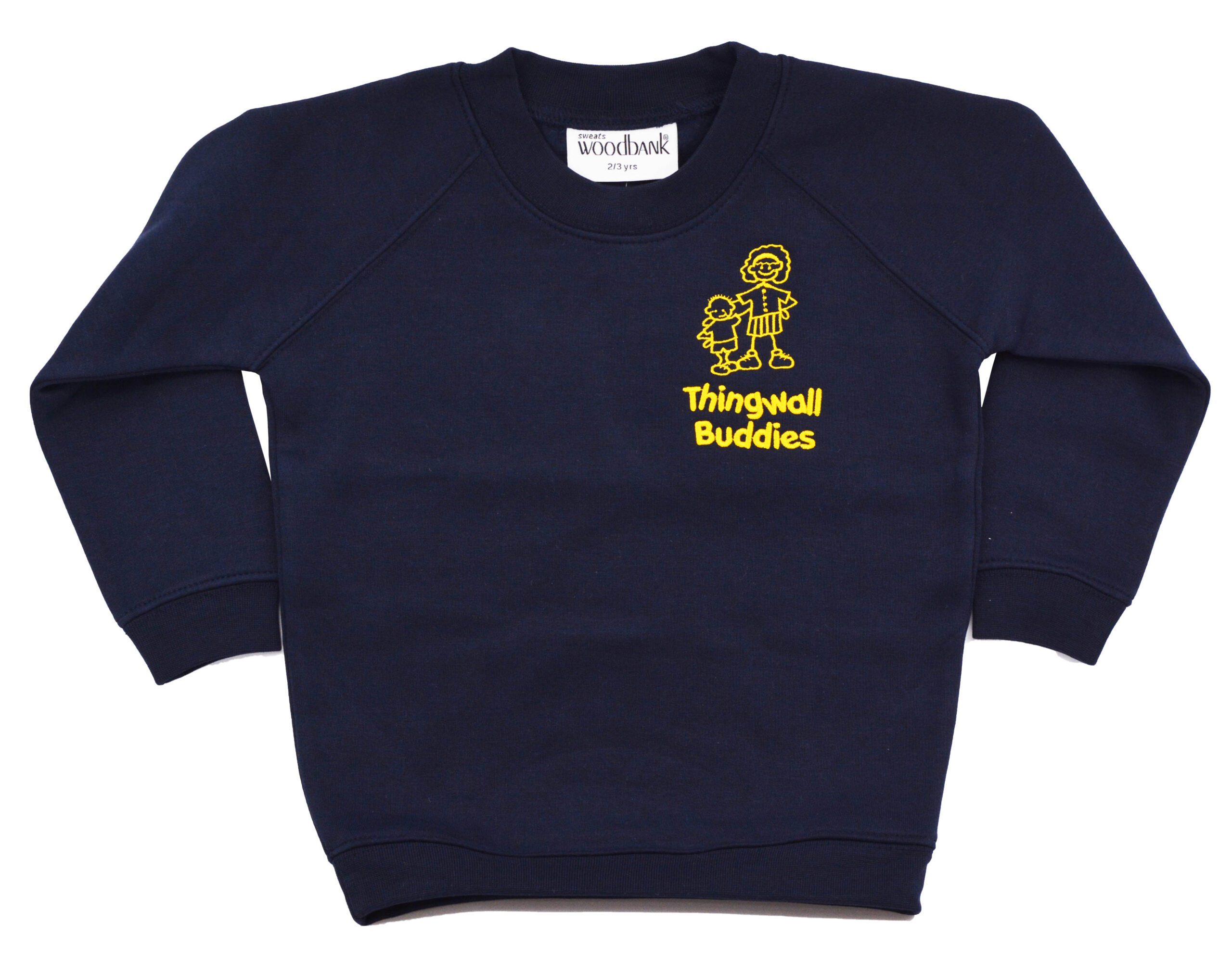 Thingwall Buddies, Navy Blue Sweatshirt, Embroidered School Badge with Raglan Sleeves.