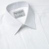 Simpson & Ruxton. Pure Cotton White Pleated Fly Front Evening Dress Shirt with Regular Collar, Double Cuff Suitable for Cufflinks.