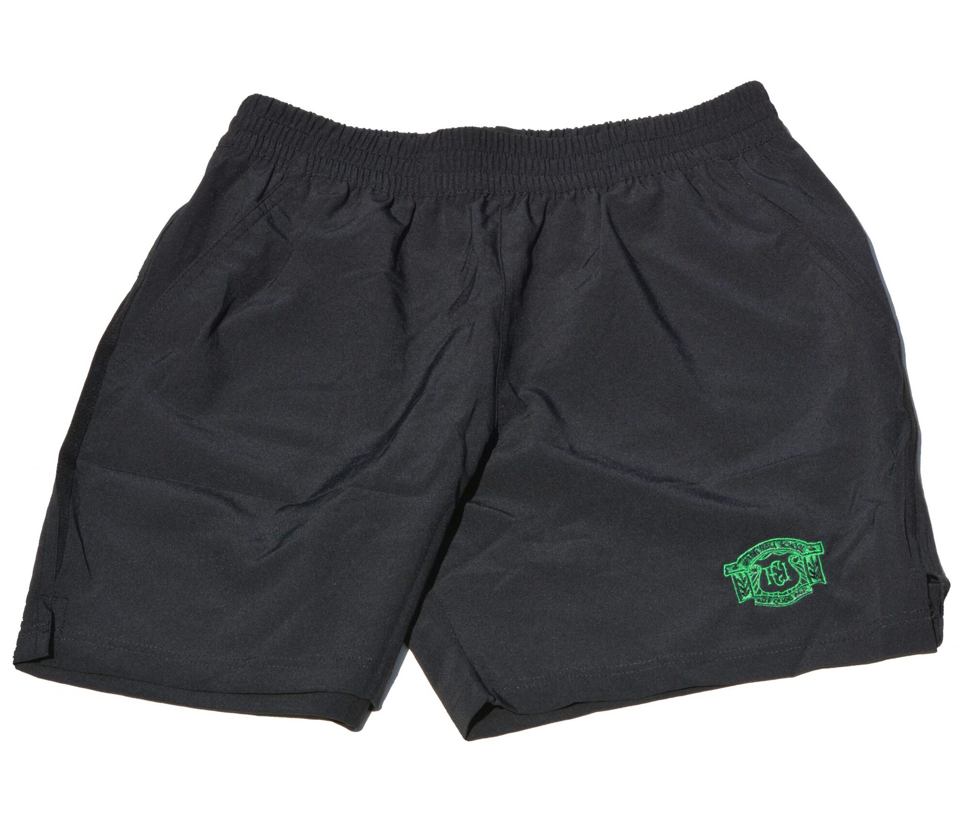 Upton Hall School Black matt finish 2 way stretch polyester fabric sports shorts,