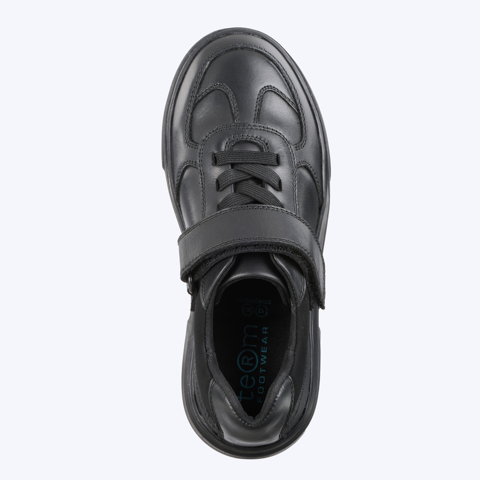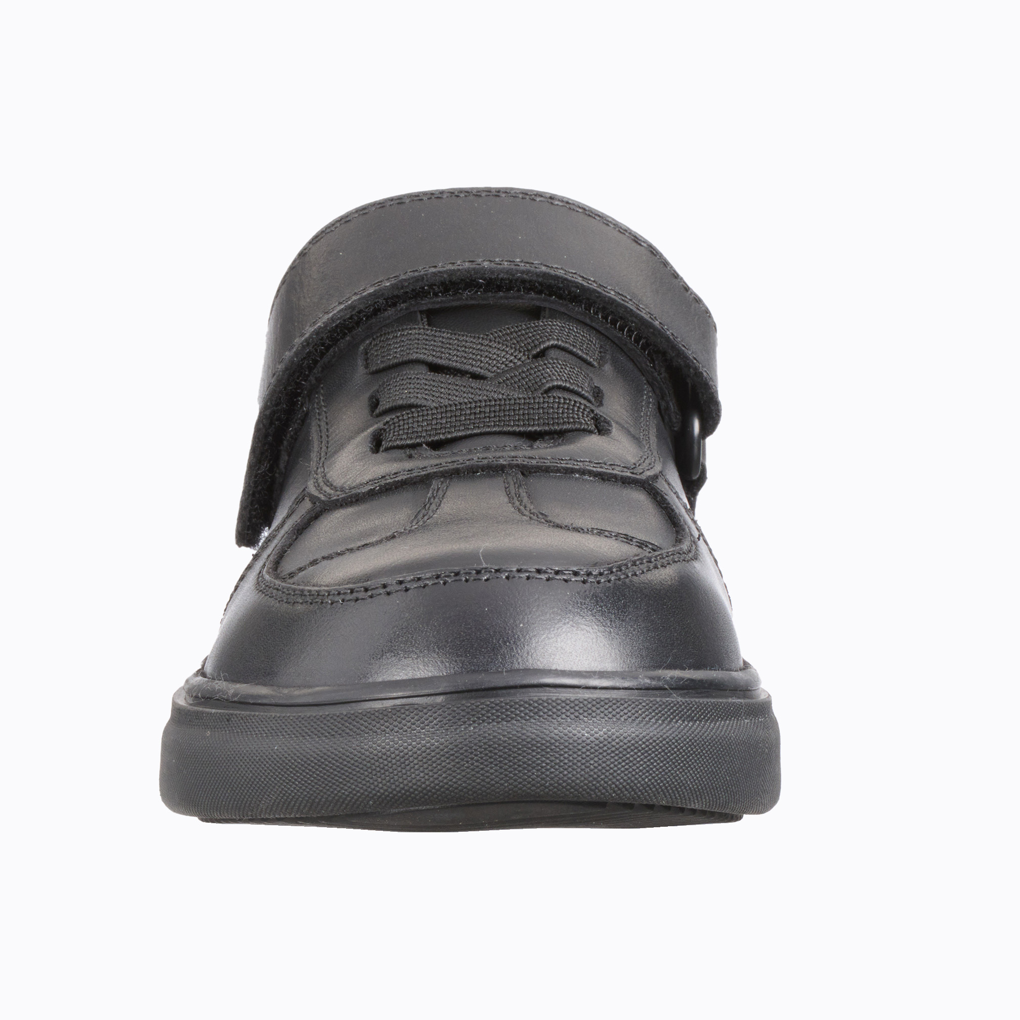 Easy to slip on and easy to fasten, this lightweight but strong black school shoe also has extra comfort features to aid foot development.