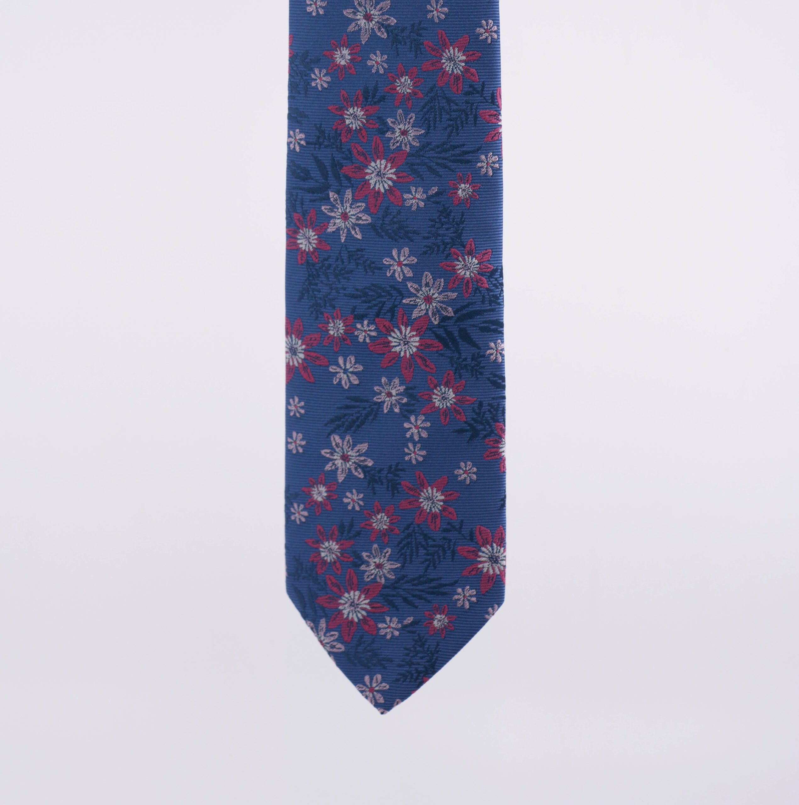 Van Buck. Navy Floral Design Woven Polyester Tie with a 9cm Blade. Made in the United Kingdom.