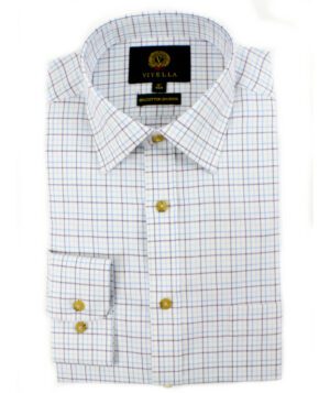 Viyella. Blue and Navy Mini Tattersall Check Winter Long Sleeve Casual Shirt