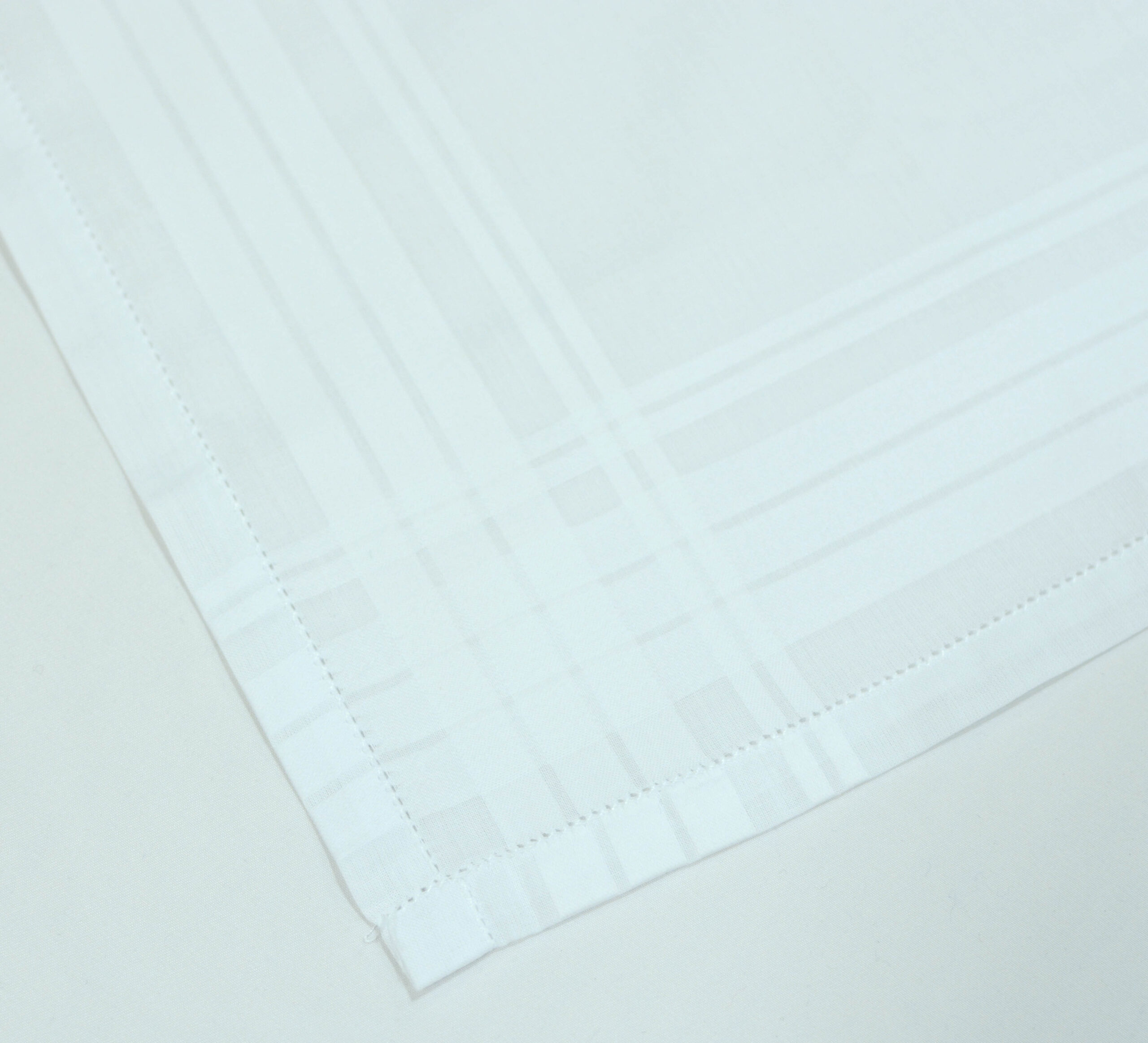 Pyramid plain white satin bordered hem stitched gentlemen’s handkerchiefs.