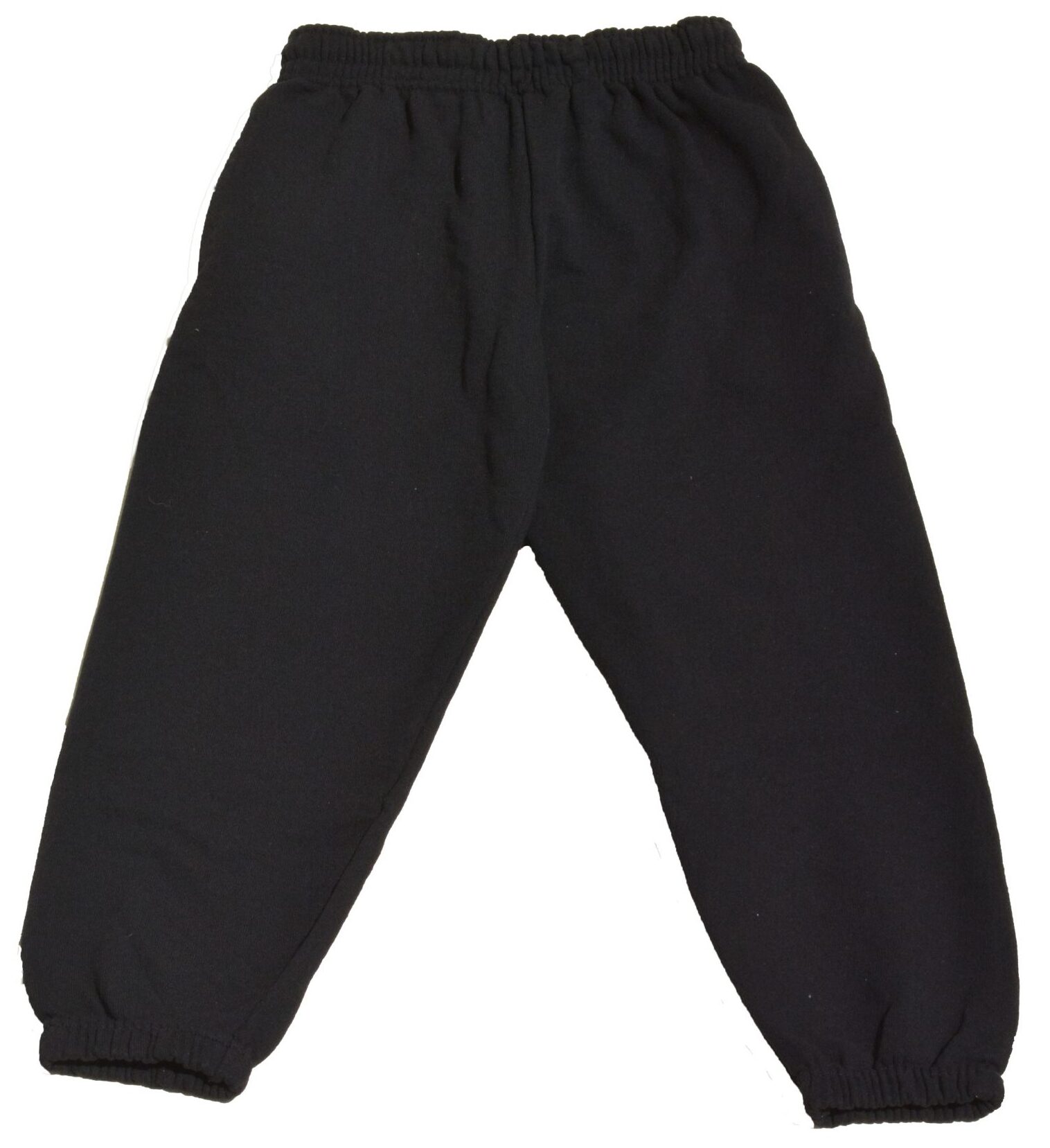 Black Jog Pants, Soft Handle Brushed Back Fabric. Side Pockets. Elasticated Waistband and Bottom Cuffs.