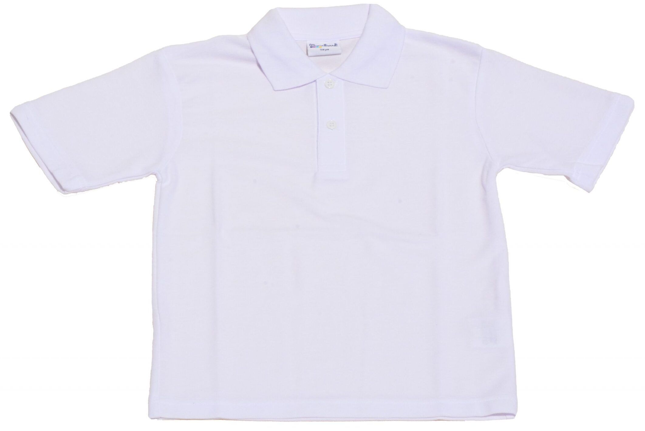 White Polo Shirt with a Flat Knit Collar and Matching Buttons.